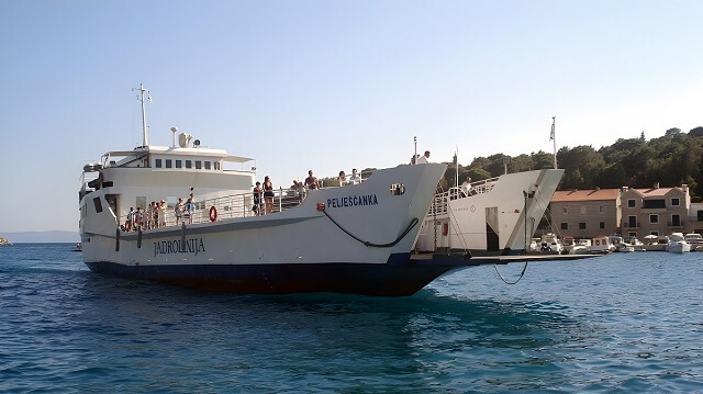 This is what the ferry from Split to the island looks like. It holds about 10 cars and more than 100 passengers