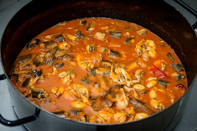 The first course is brodet soup, which is very popular with the locals. It used to be prepared exclusively by the poor, but nowadays it can be ordered in any self-respecting restaurant. Fish and seafood are stewed in an open container, adding vegetables and spices until almost all the water has evaporated. It is usually served with polenta.